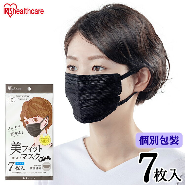 美フィットマスク ふつうサイズ 7枚 19PK-FBF7MB ブラック 花粉 風邪 ウィルス 感染 予防 すっぴん アイリスオーヤマ