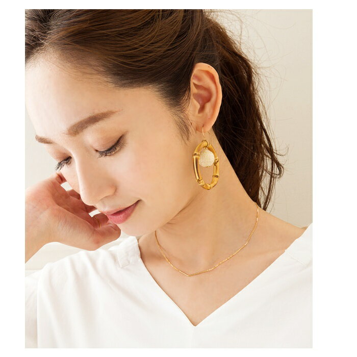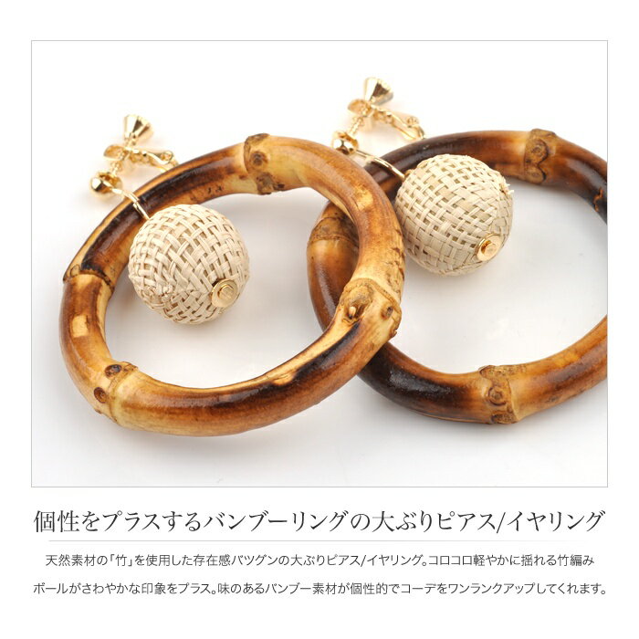 【ゆうパケットOK】個性をプラスするバンブーリングの大ぶりピアス/イヤリング サイズ モチーフ大きさボール:1.6cm、リング:約4.8cm 素材 合金(brass)、バンブー ※低アレルギー素材のニッケルフリーです。